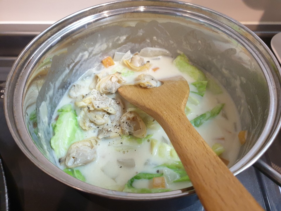 마지막으로 이번 요리의 주역인 바지락을 넣어줍니다.