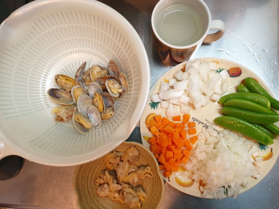그런 와중에, 일본의 요리 사이트이자 어플인 Cookpad에서 나온 레시피를 보고 바지락 요리를 하게 되었습니다.