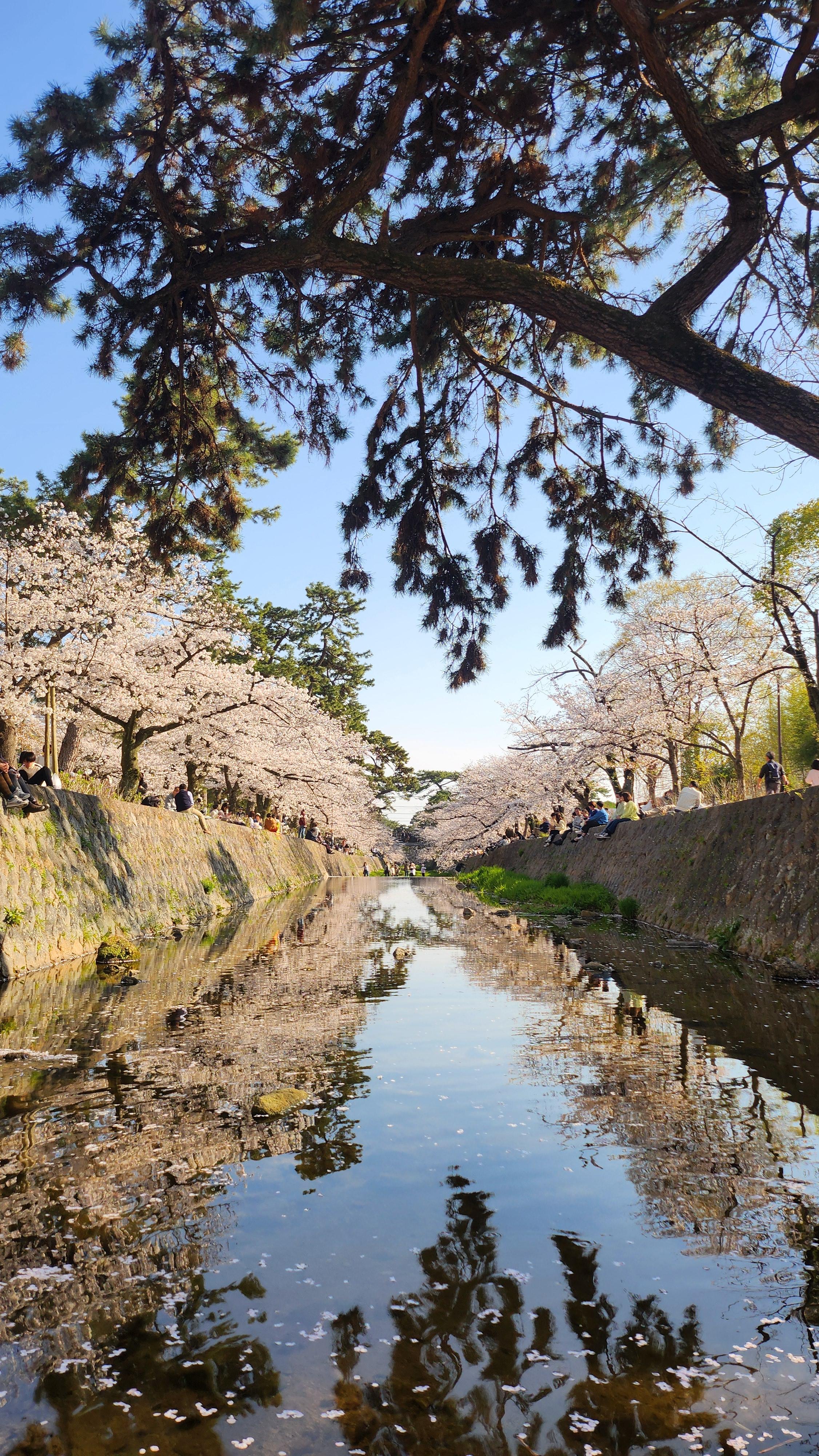 그 강을 따라 벚꽃이 피어 있어서 사람들이 많이 모이는 곳 중 하나입니다.