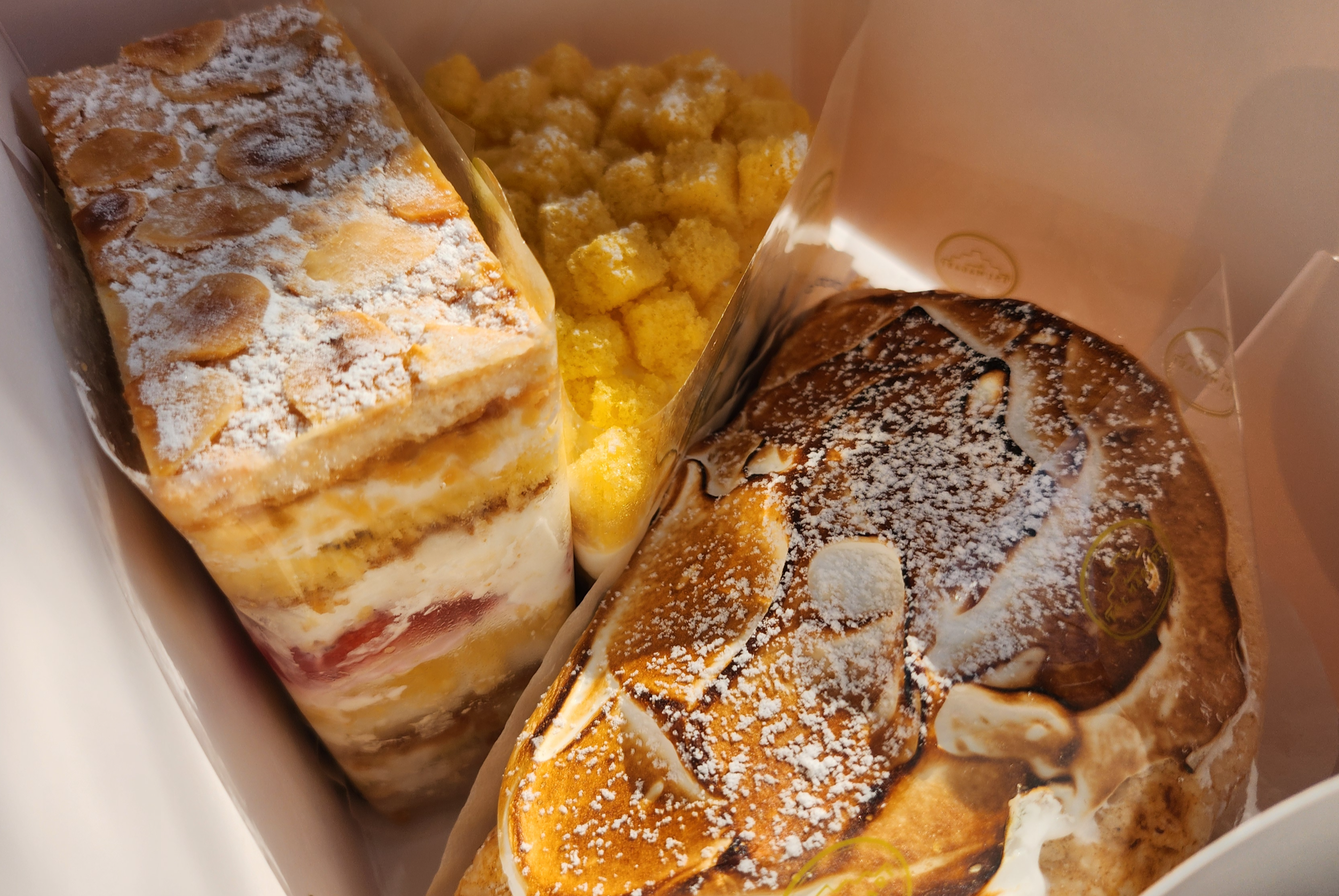 앉자마자 고요엔 역 근처에 있던 '카페 하우스 츠마가리'에서 구매한 케이크를 오-픈!