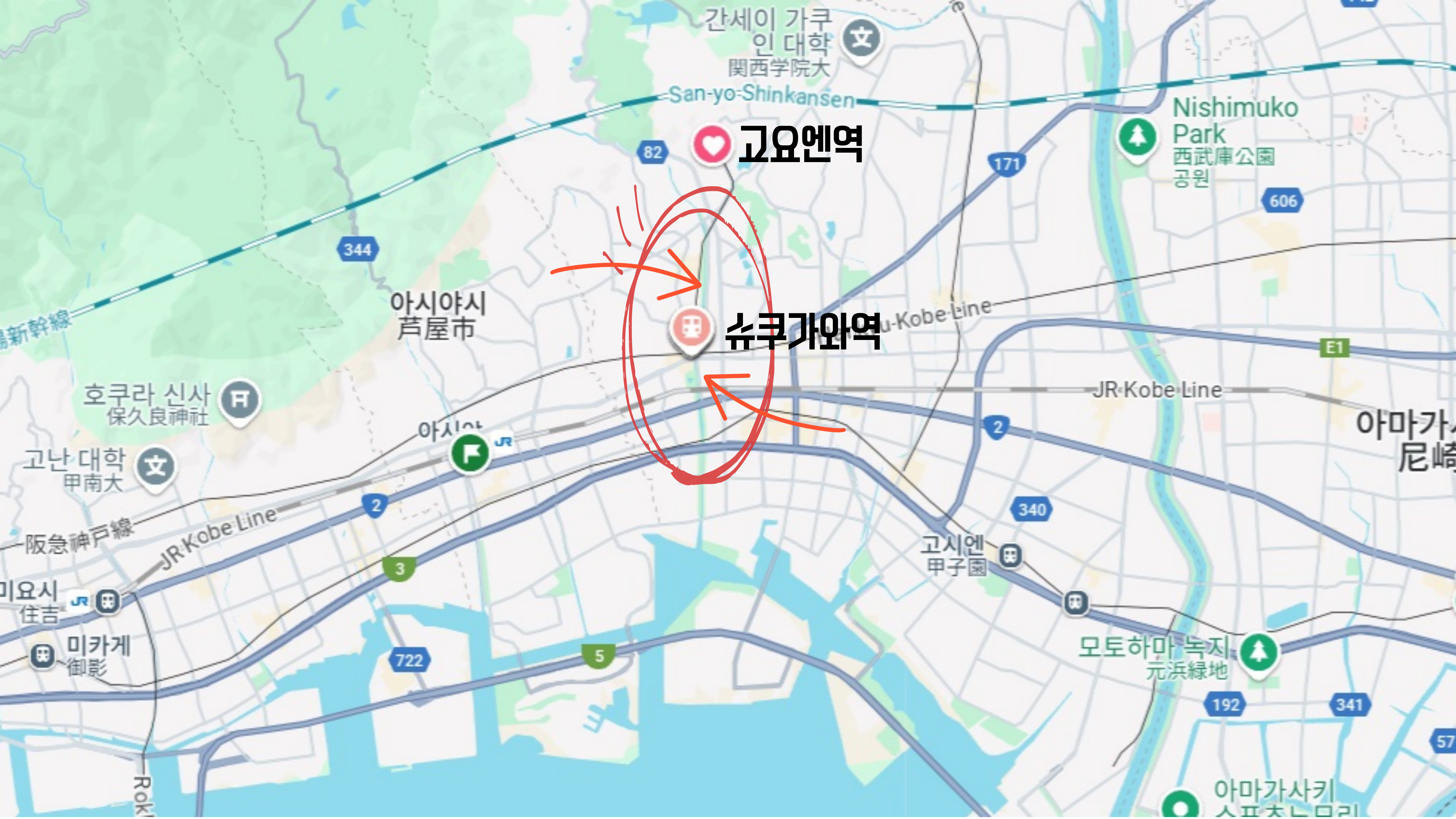 고베 니시노미야쪽에 있는 슈쿠가와역이 오늘의 첫번째 목적지 입니다.