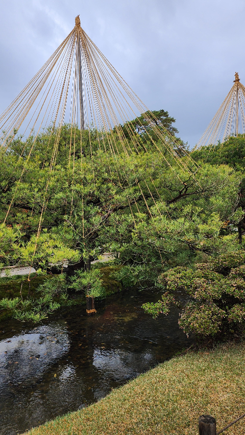 특히나 겐로쿠엔의 유키즈리가 유명한데, 눈의 무게를 지탱하기 위한건데 저는 딱딱한 나무 같은거 일줄 알았는데 설치하는걸 보니 끈(?)같은걸로 고정을 하더라고요:)
