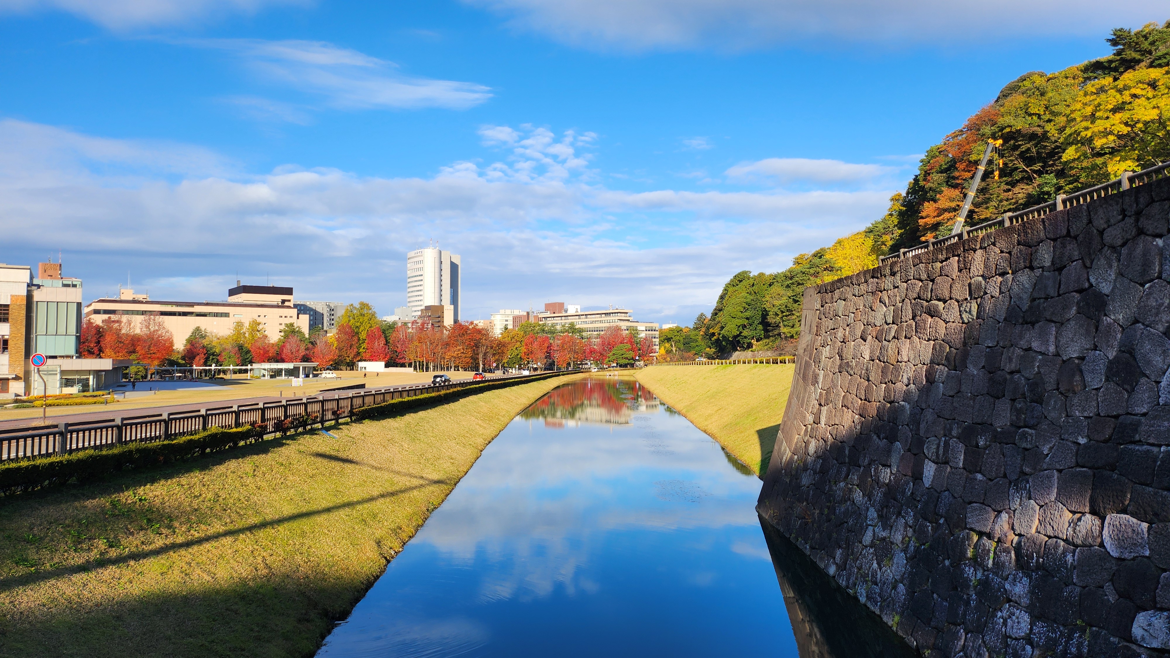가나자와성 공원을 따라 자전거를 타고 가는데, 날씨가 이때는 좋았어서 그런지 제 기분도 참 좋더라고요.