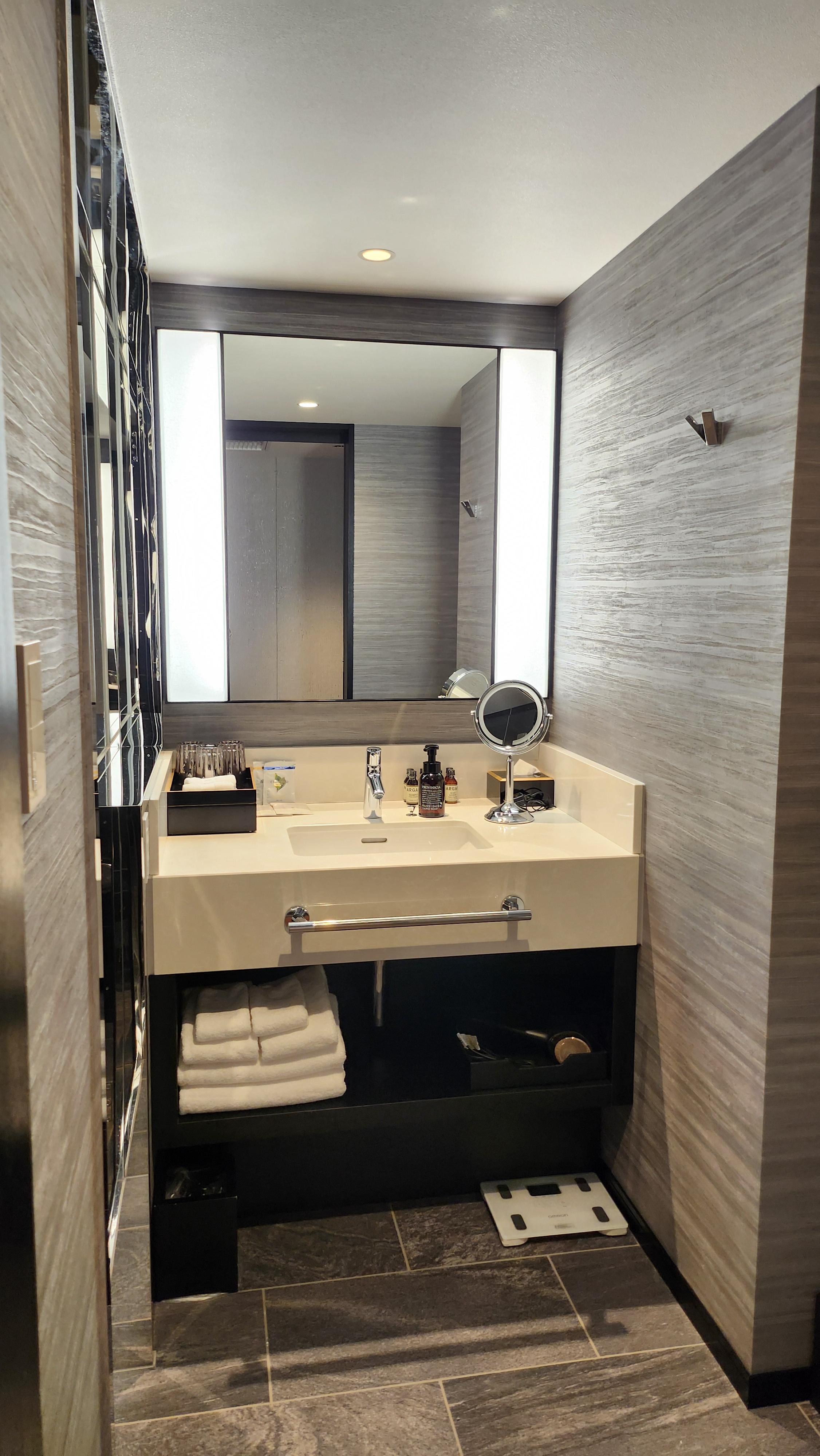 기본적인 어메니티와 함께 체중계도 놓여있었습니다.