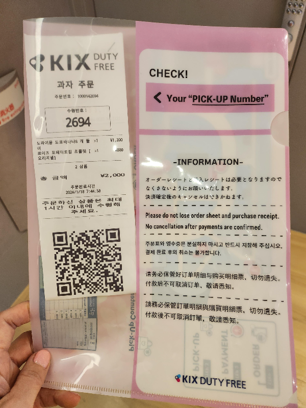 쭉~ 둘러보고 다시 키오스크가 있는 곳으로 가서 조금 기다렸다가 주문한 과자를 받았습니다.