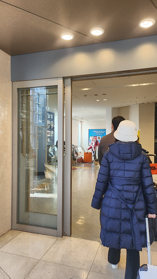 에스컬레이터에서 내리면 건물 입구가 보이는데요.