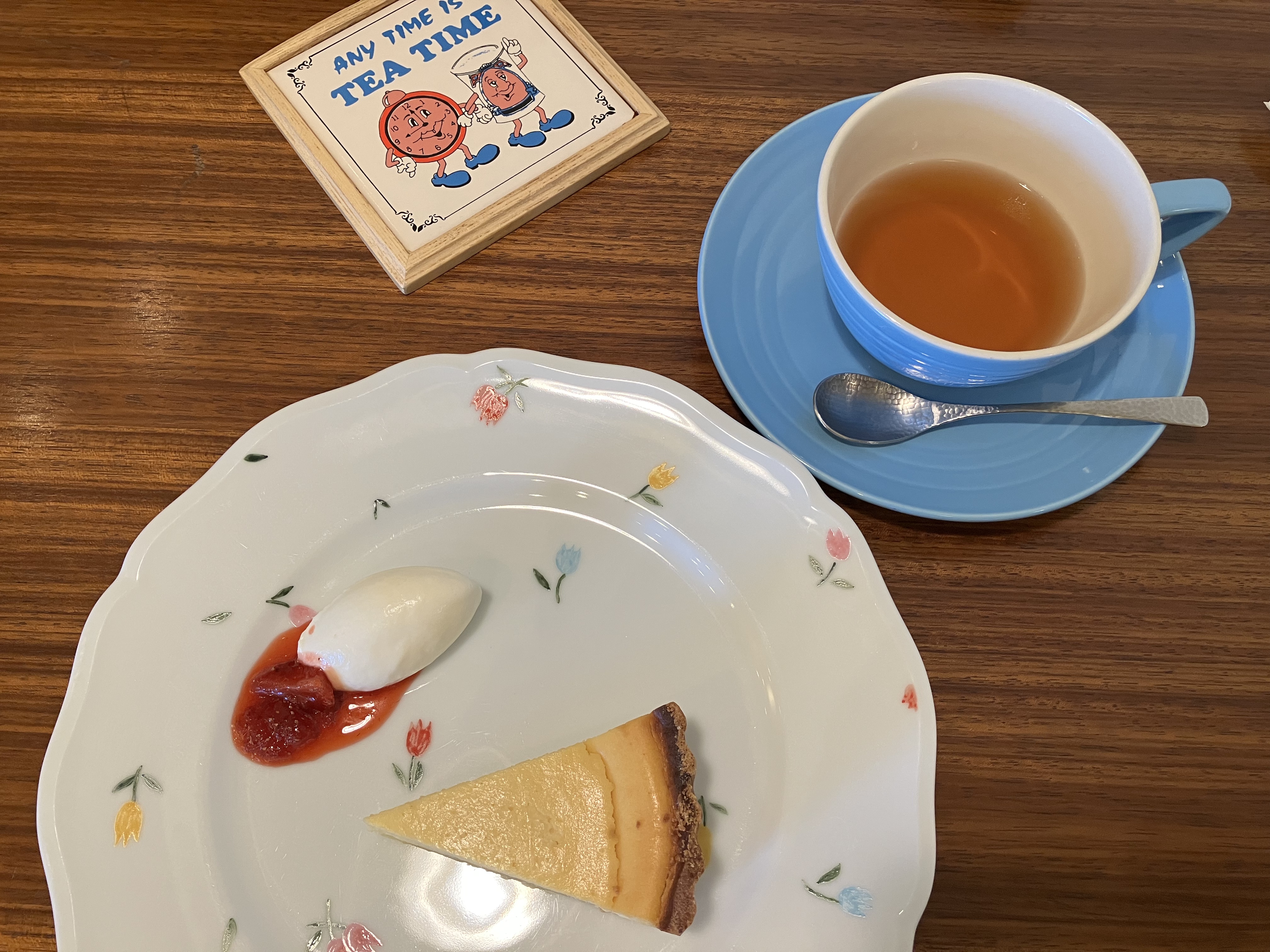 주문 후 나온 치즈케이크와 컨티넨탈 로얄 밀크티!!!! 위에 크림이 있어서 잘 저어서 마셔주면 됩니다.