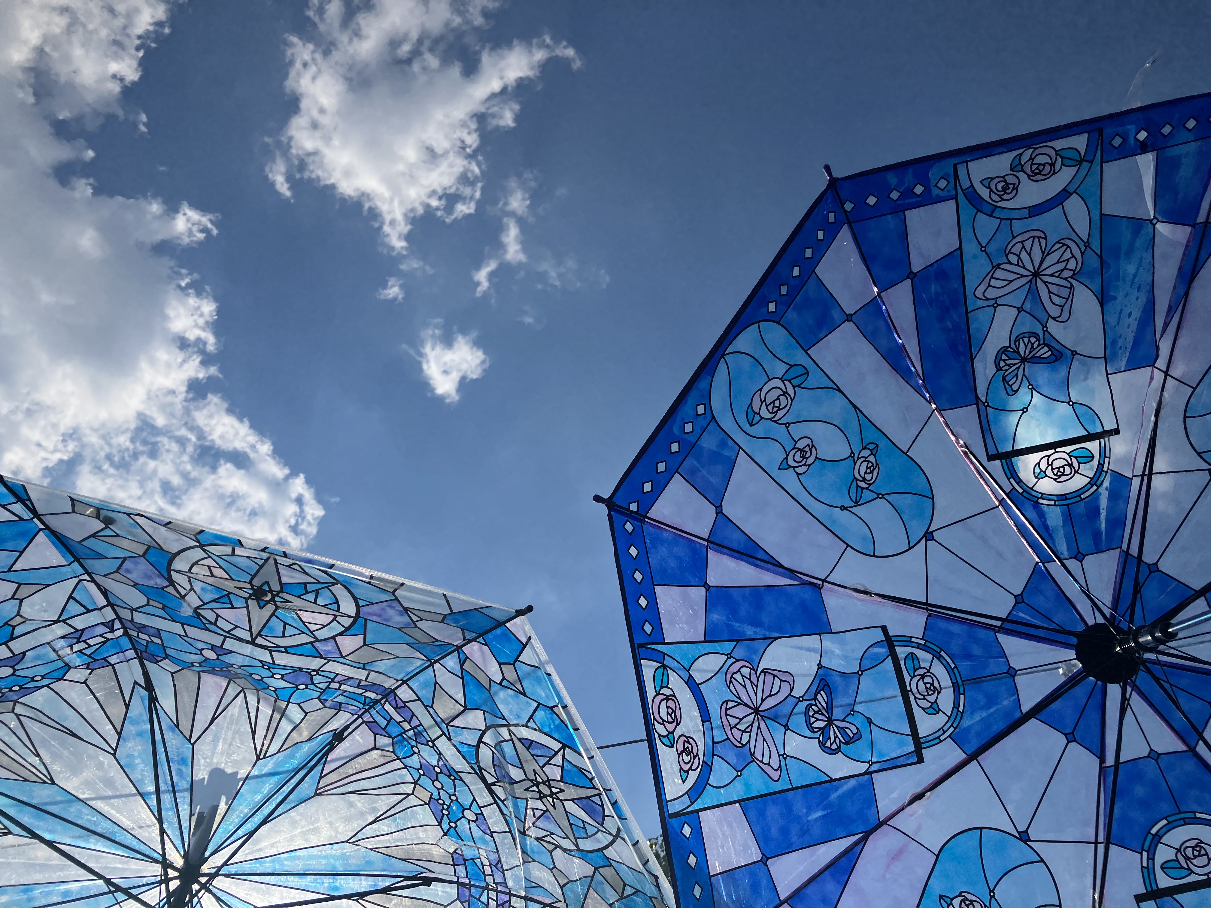날이 엄청 화창했어서 바닥에 비친 우산의 모습도, 위에 기분좋게 둥실둥실 떠 있는 우산도 너무 예뻤습니다.