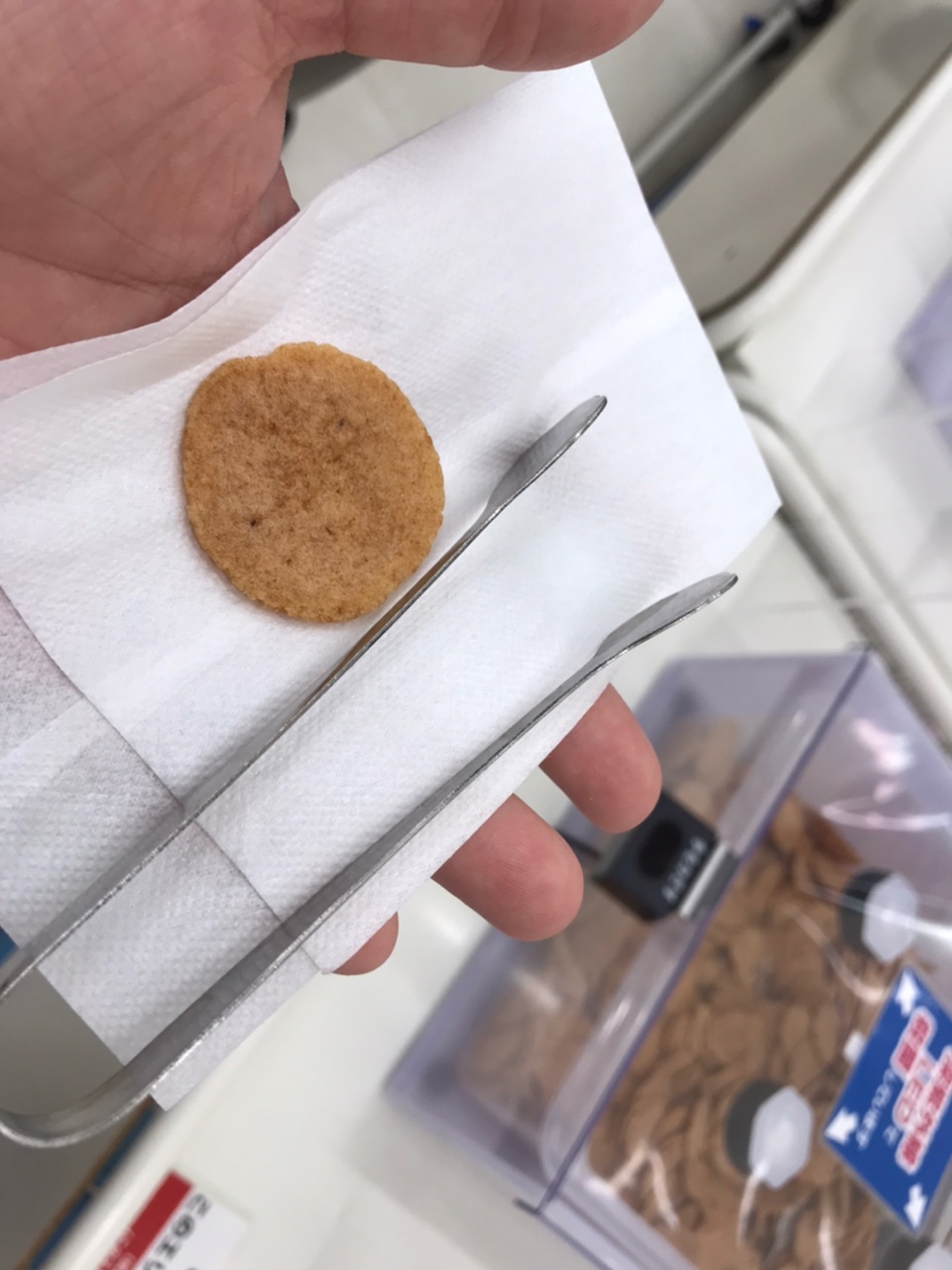 그리고 시식 해 보고자 하는 센베이를 집게로 집으면 된는데요!