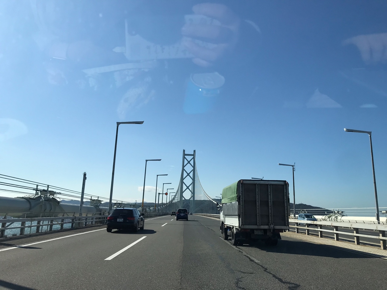 바람이 많이 불기는 했지만, 바람을 가르며 혼슈에서 아와지시마로 넘어갔습니다.