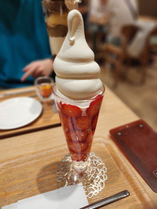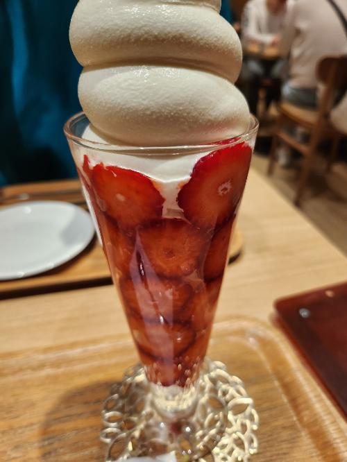 위에 아이스크림은 진한 우유맛에, 딸기는 상콤해서 정말 찰떡같이 어울렸습니다.
