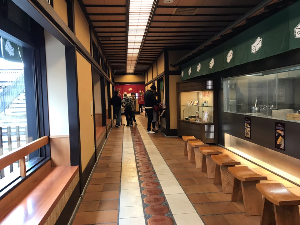 언덕을 올라가 가다보니 오른쪽 편으로 명물 유두부 오카베야 라는 초록색 간판이 보였습니다.