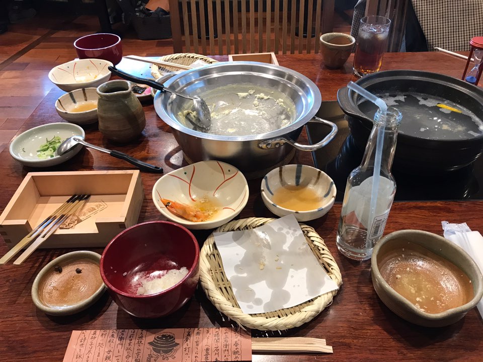 얼마 지나지 않아 테이블 중간에 있는 IH에 냄비가 놓여졌고, 음식드리 나오기 시작했습니다.