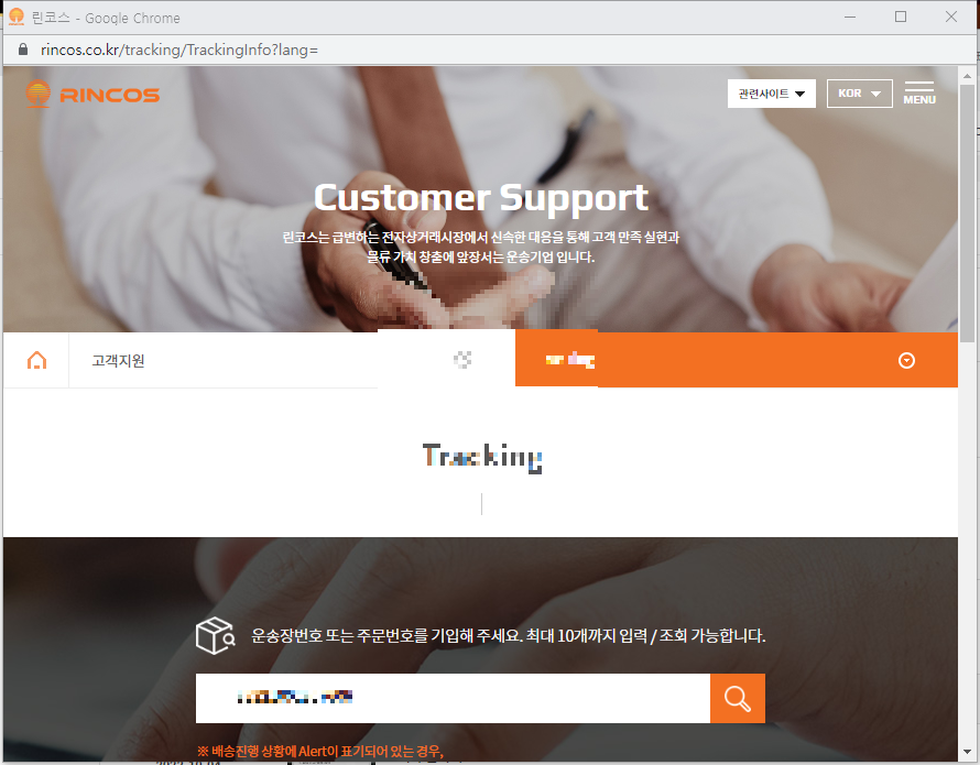 그러면 운송장번호 또는 주문번호를 입력할 수 있는 페이지가 나옵니다.