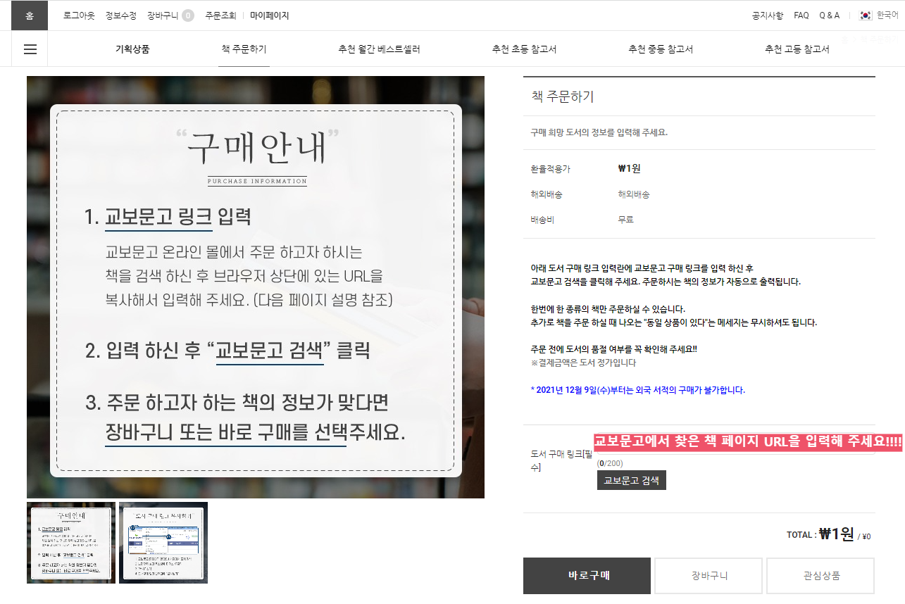 그 책 페이지의 URL이 주문할 때 필요합니다.