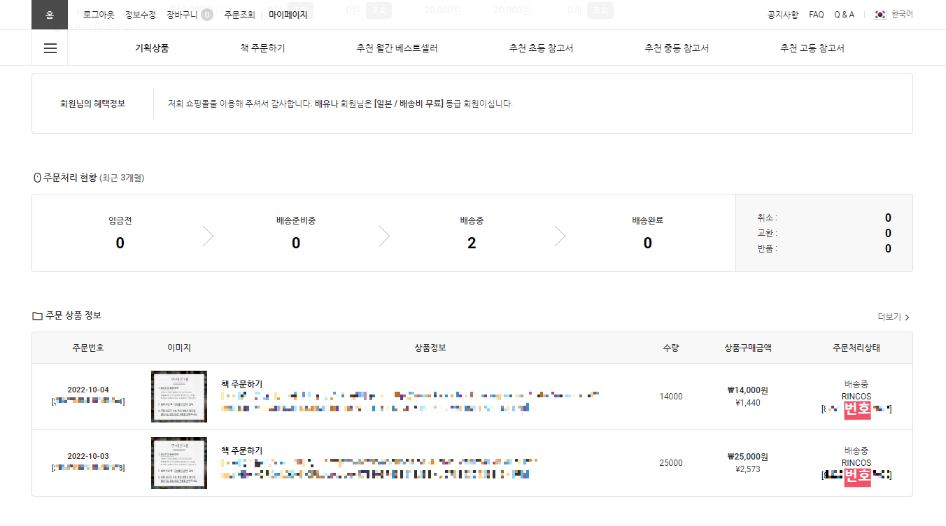 책을 받기까지 어러번 배송현황 확인을 했었는데 어디서 확인을 할 수 있는지 방법 안내를 드리겠습니다.