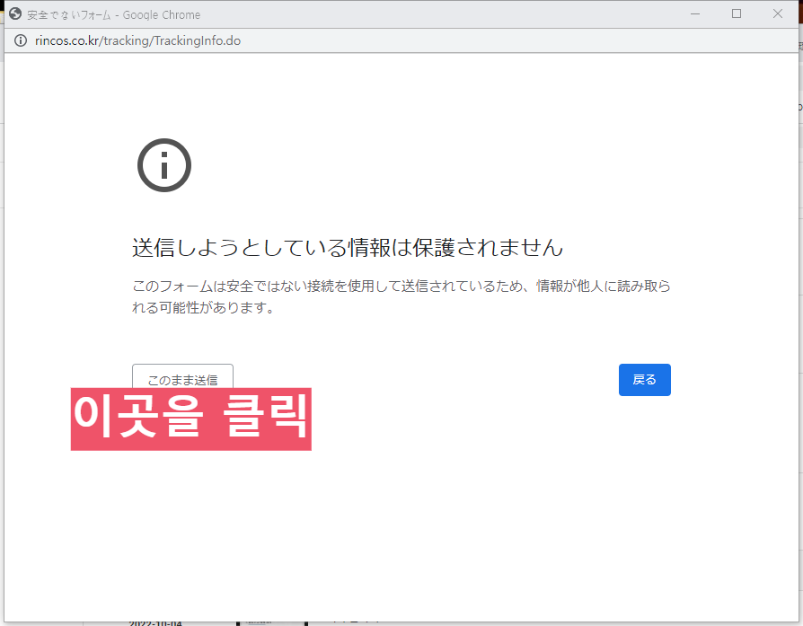 정보 보호가 되지 않는다는 안내문구인데요. 이대로 송신 부분을 눌러줍니다.