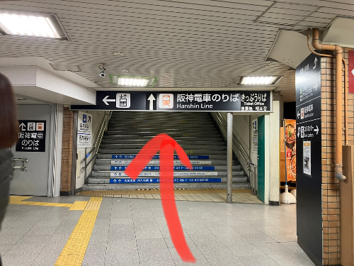 그리고 나가면 바로 오른쪽에 한신전철 타는 곳으로 가는 계단이 나옵니다!!!!!!