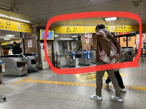 신나게 USJ에서 놀고 JR을 타고 니시쿠조역으로 오게 되죠.