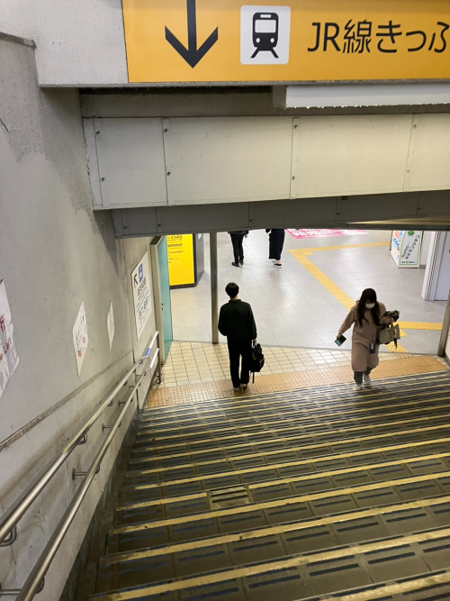계단만 잘 내려가시면 완전히 밖으로 나가실 필요 없이 바로 JR을 타실 수 있어요.