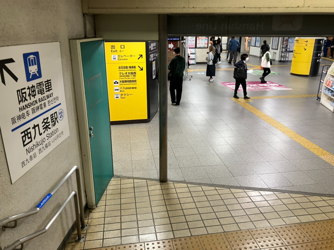 한신 니시쿠조역에서 내리게 되면, 출구가 양 끝에 하나씩 있는데요!