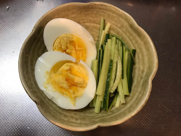 それで私は簡単にゆで卵ときゅうりを用意しました。