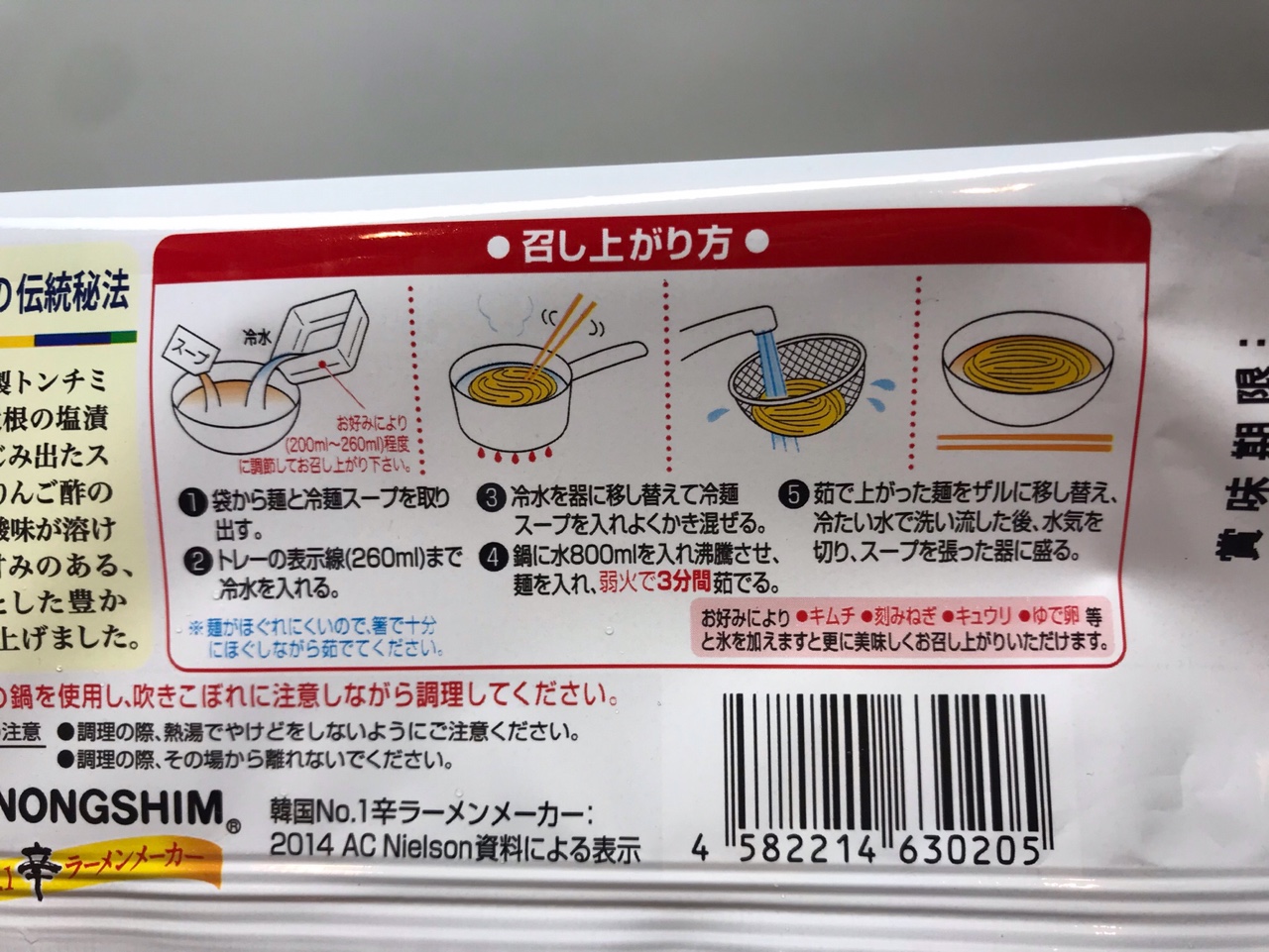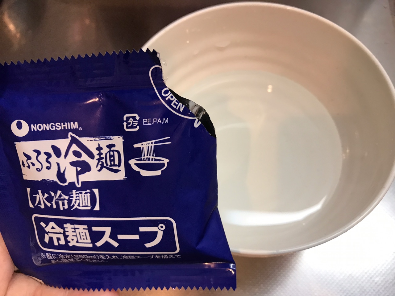 水冷麺とビビン冷麺二つの種類があって、どちらも買いましたが今回は水冷麺にしました。