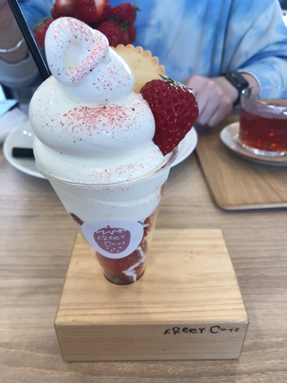 양이 너무 많을 듯해서 1인이 먹을 수 있는 프리미엄 파르페와 딸기차, 그리고 제가 먹을 딸기 파르페를 주문했습니다.