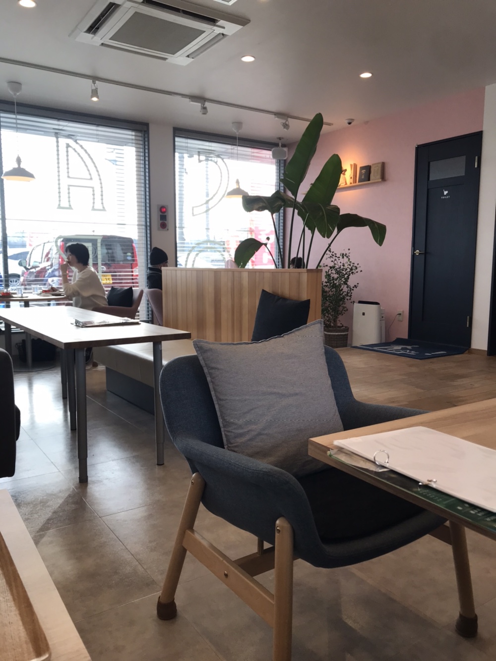 좌석 하나하나가 시원시원하게 자리를 잡고 있어서, 오사카시에서만 보던 카페와는 또 다른 느낌이었습니다.