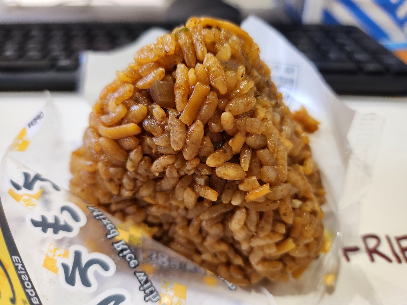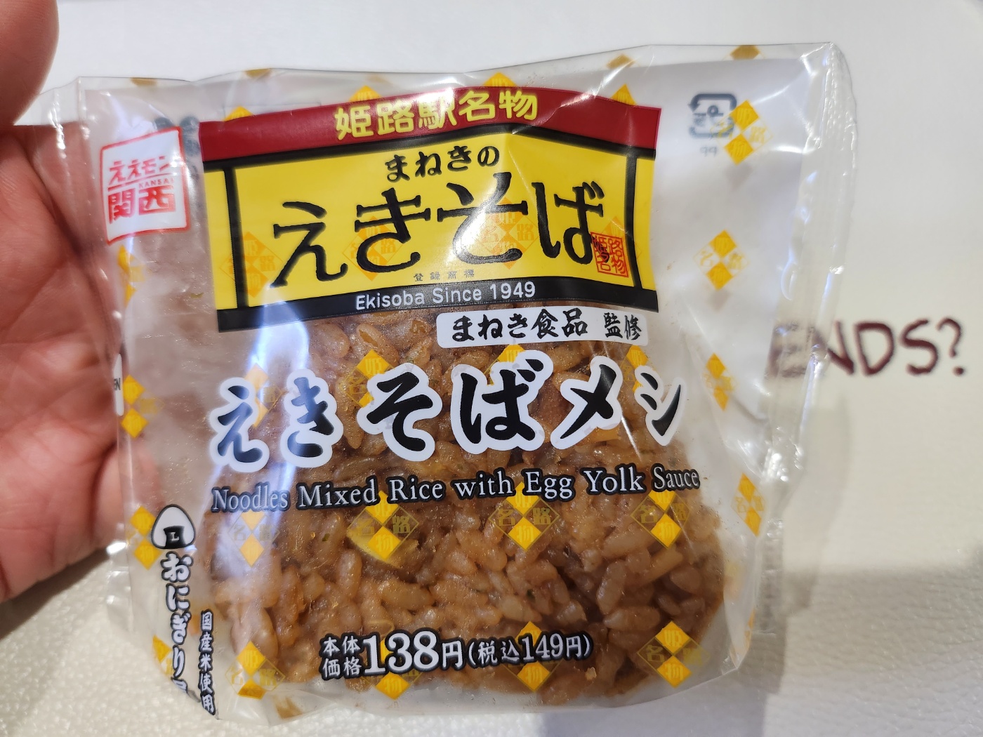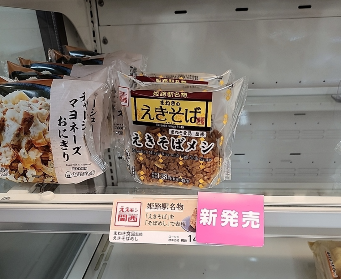 히메지역의 명물인 마네키식품의 에키소바를 소바메시로 만들어 놓은 주먹밥인듯 보였습니다.