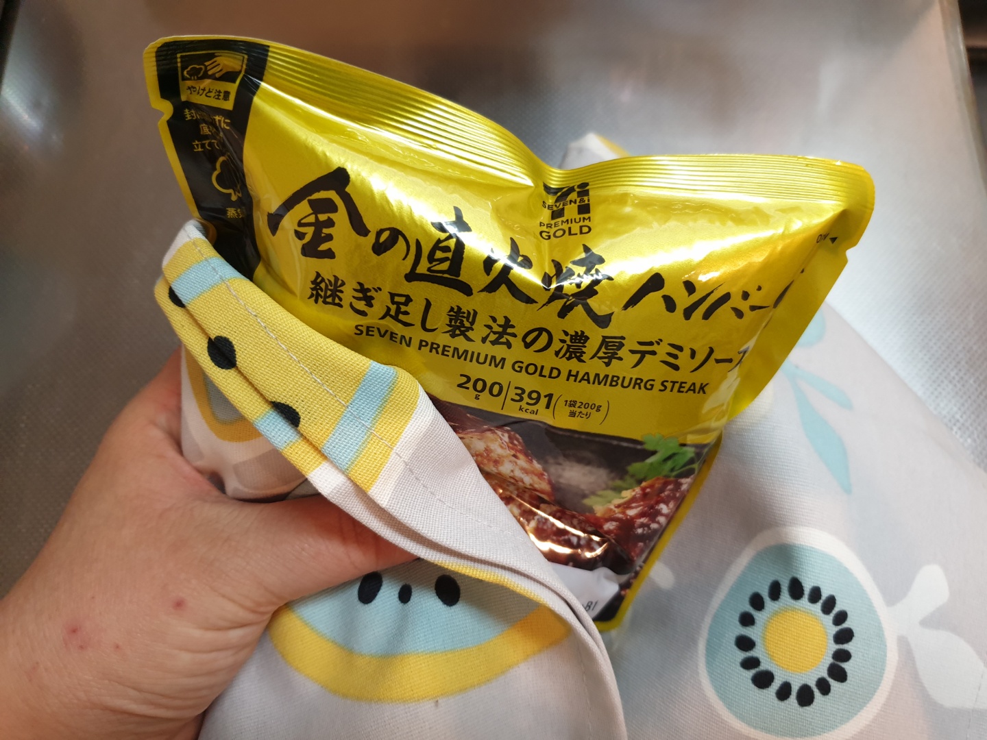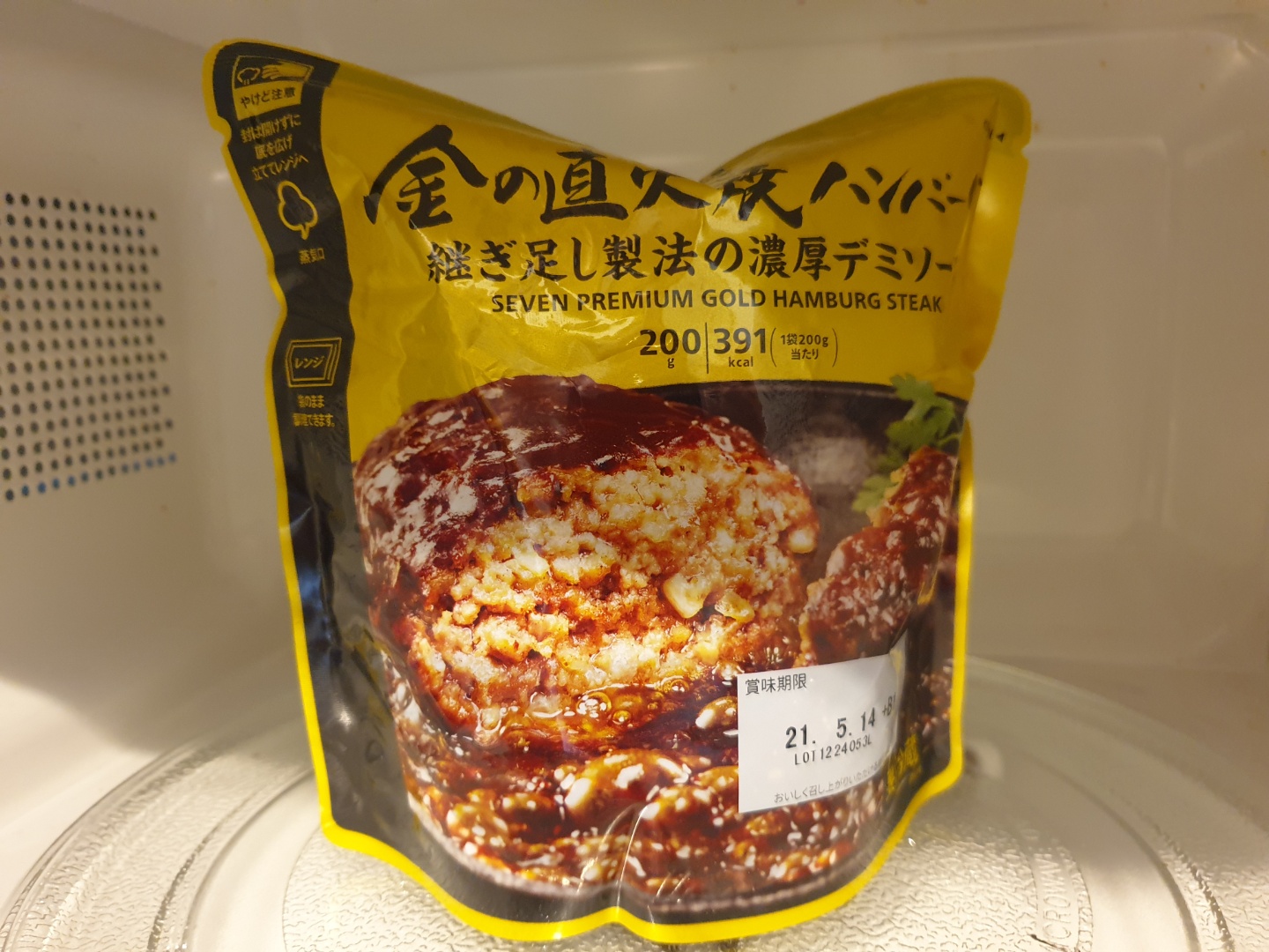 다 데워지고 나면 함박 스테이크 봉투가 통통하게 부풀어져 있는데, 잠깐 기다리면 증기가 빠져서 다시 홀쭉해 집니다.