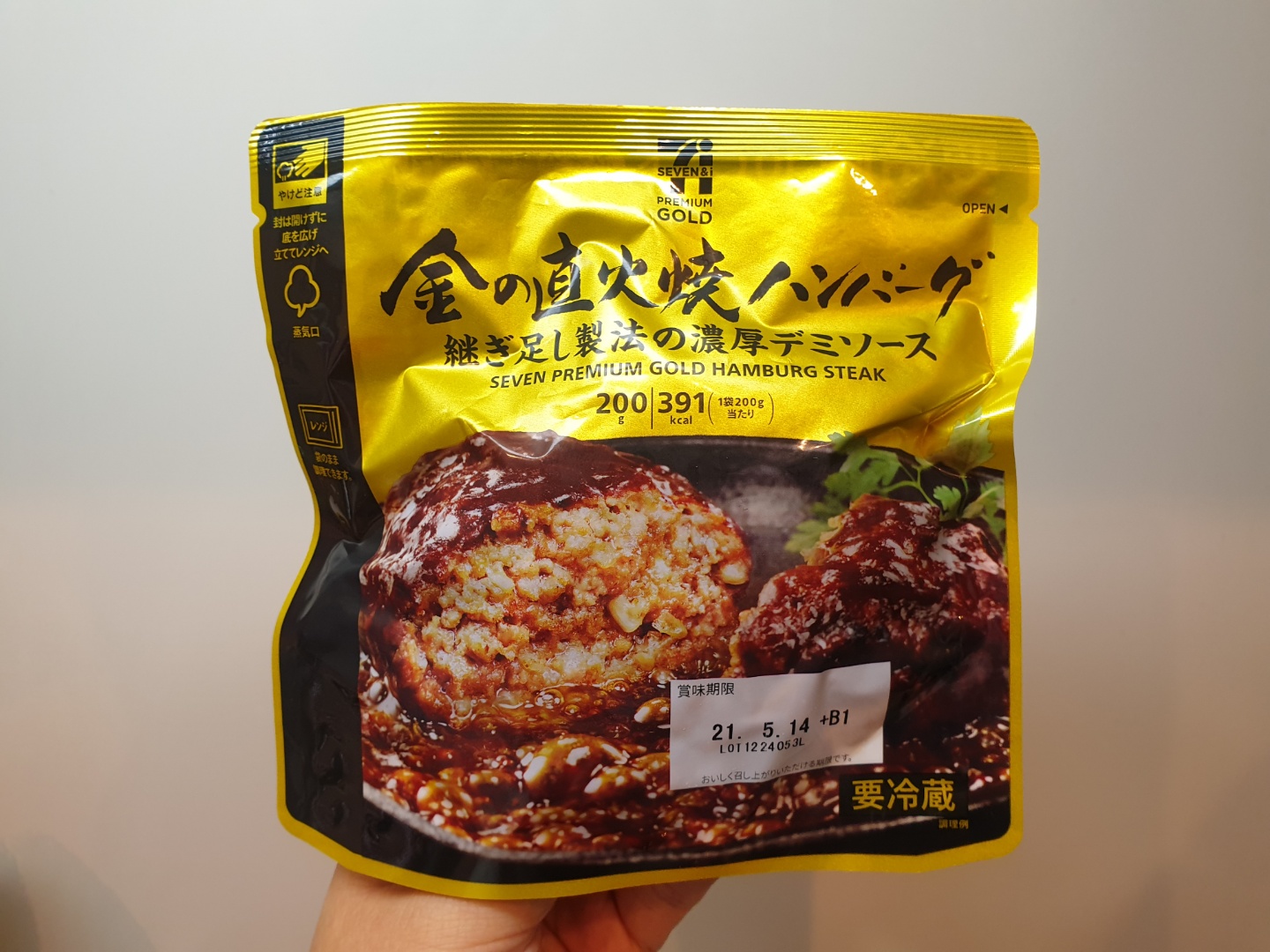 일본 세븐일레븐 에서 판매하는 금의 직화구이 함박스테이크 ( 金の直火焼ハンバーグ ) 1봉