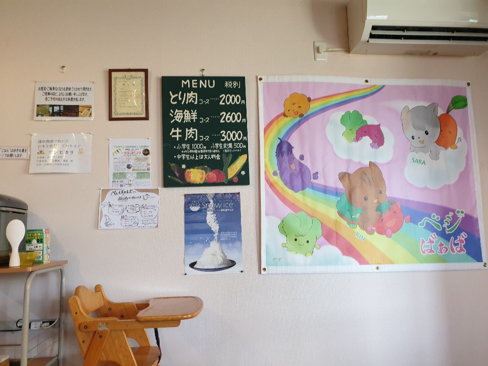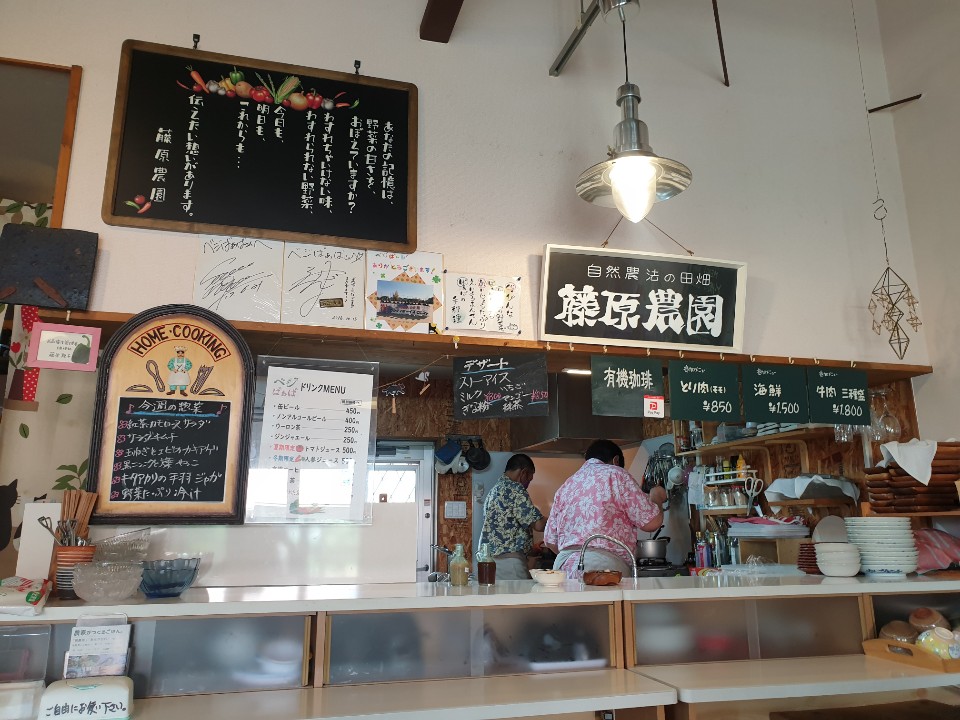 앞에 간판이, 농가 레스토랑 베지 바바(べじばぁば)! 라고 떡 하니 놓아있었습니다.