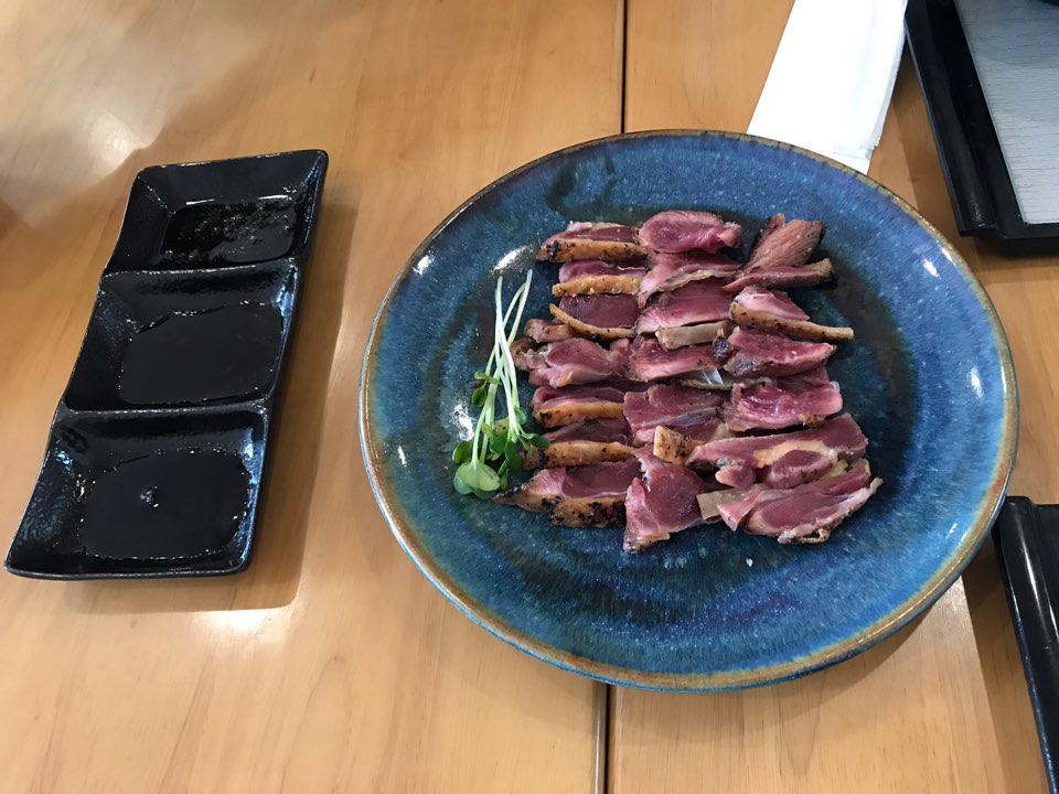 고기 겉을 살짝 불로 구운 타타키는 세가지의 양념에 찍어먹을 수 있었습니다.