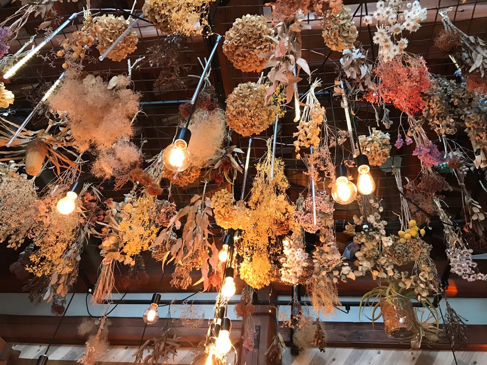 천장에 저렇게 드라이 플라워가 가득했어요~!