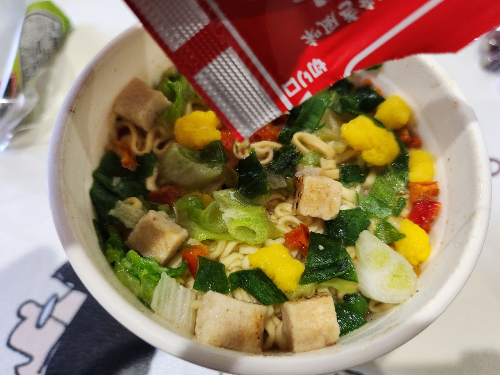 내용물을 보니 닛신의 일반적인 컵누들과 크게 다르지는 않았어요.