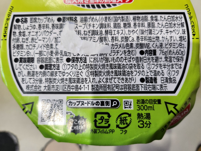 닛신의 컵누들 네기시오 인데요!