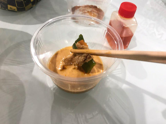국물 붓기 전에 용기 안에는 안에 들어가는 재료들이 들어가 있었습니다.