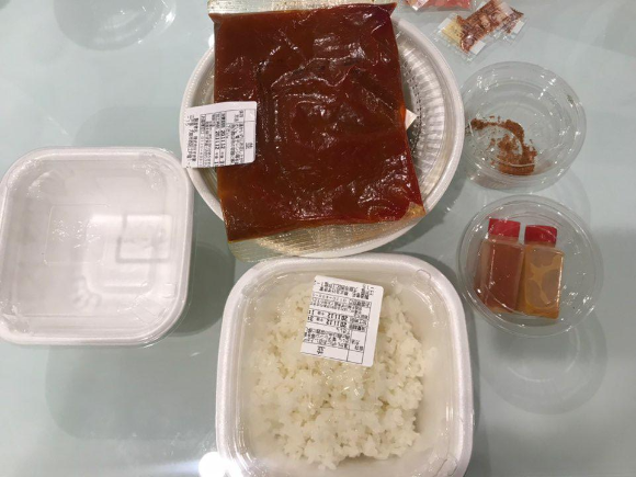 저 빨간건 라유일까요;; 히나베에 살짝 뿌려서 먹었습니다.