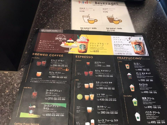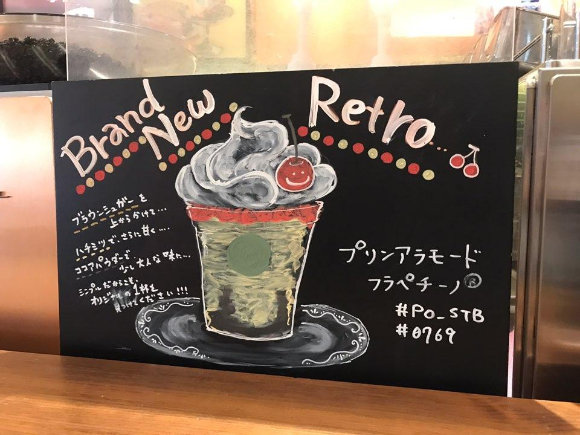 그리고 음료는 그냥 커피를 마실까 하다가...여기서도 새 음료가 보였기에 쿠폰을 써서 새론온 푸딩 아라모드 프라푸치노(プリンアラモードプラペチーノ)를 함께 주문했습니다.