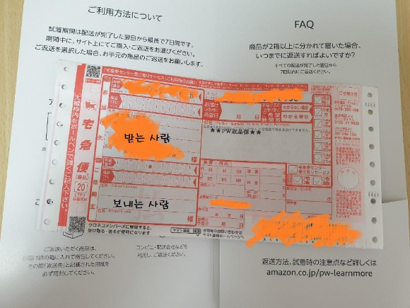 이용 방법 안내와 함께 반송하실 제품 보낼때 쓸 전표도 함께 들어있었습니다.