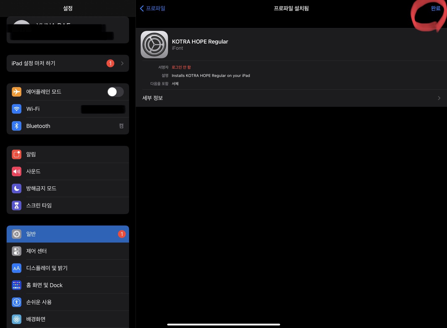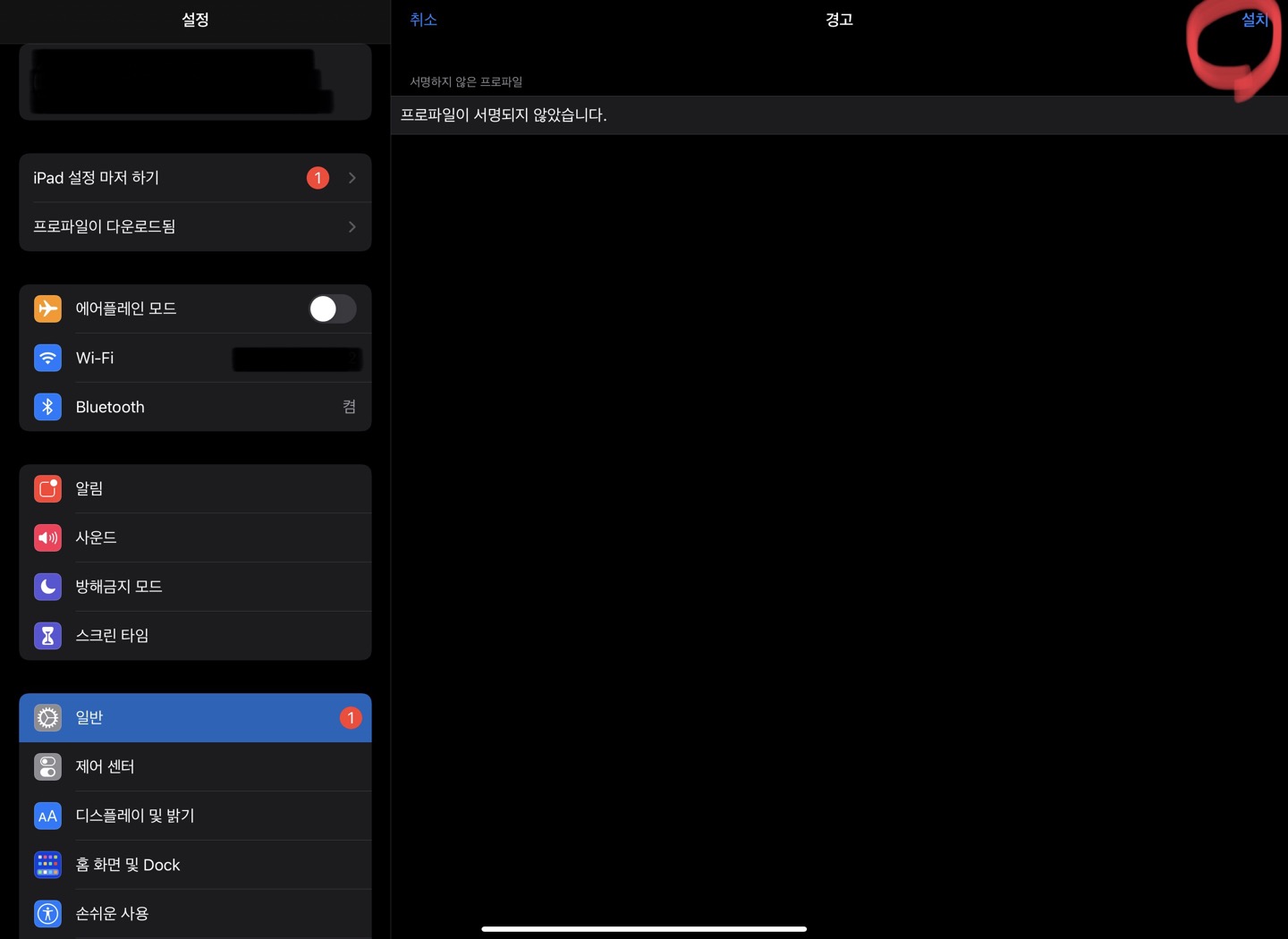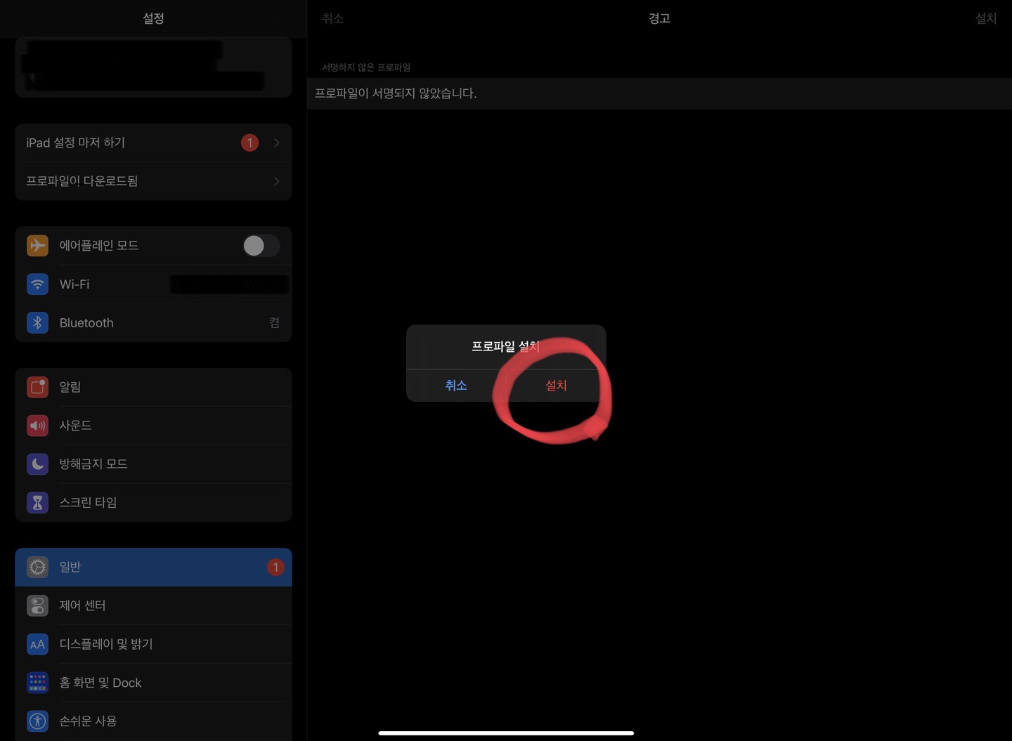 그러면 프로파일설치됨 이라는 문구와 함께 설치 완료가 된 것을 확인 할 수 있습니다.