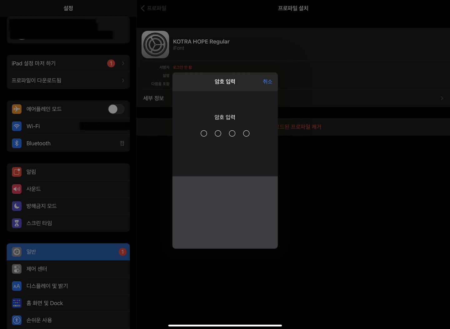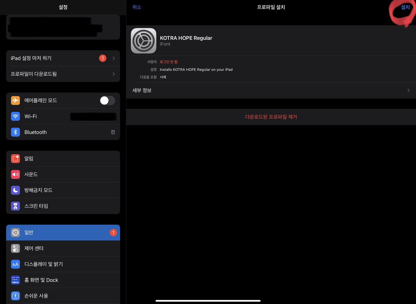 그러면 프로파일설치됨 이라는 문구와 함께 설치 완료가 된 것을 확인 할 수 있습니다.