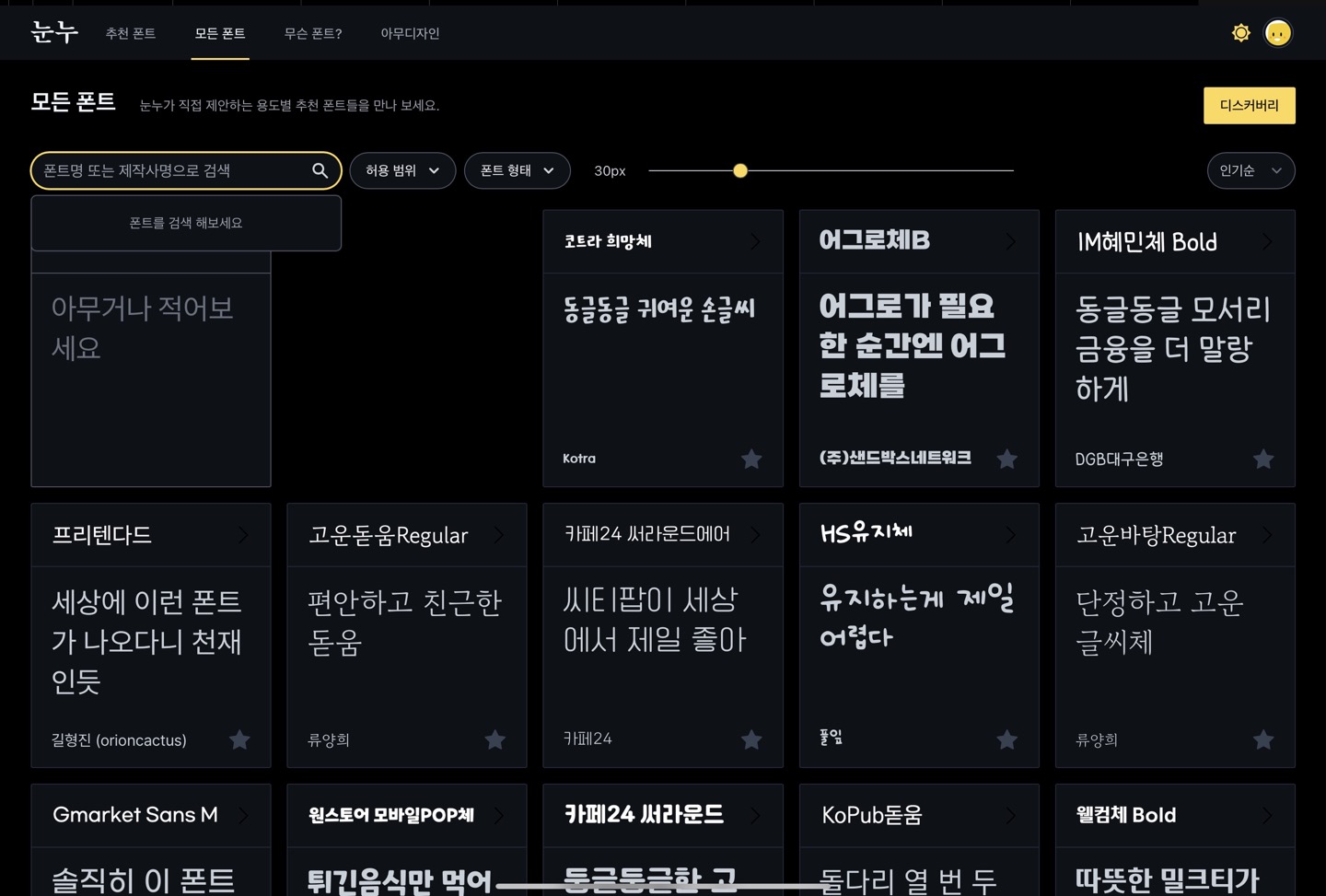 그리고 자신이 원하는 폰트를 찾아봐주세요!