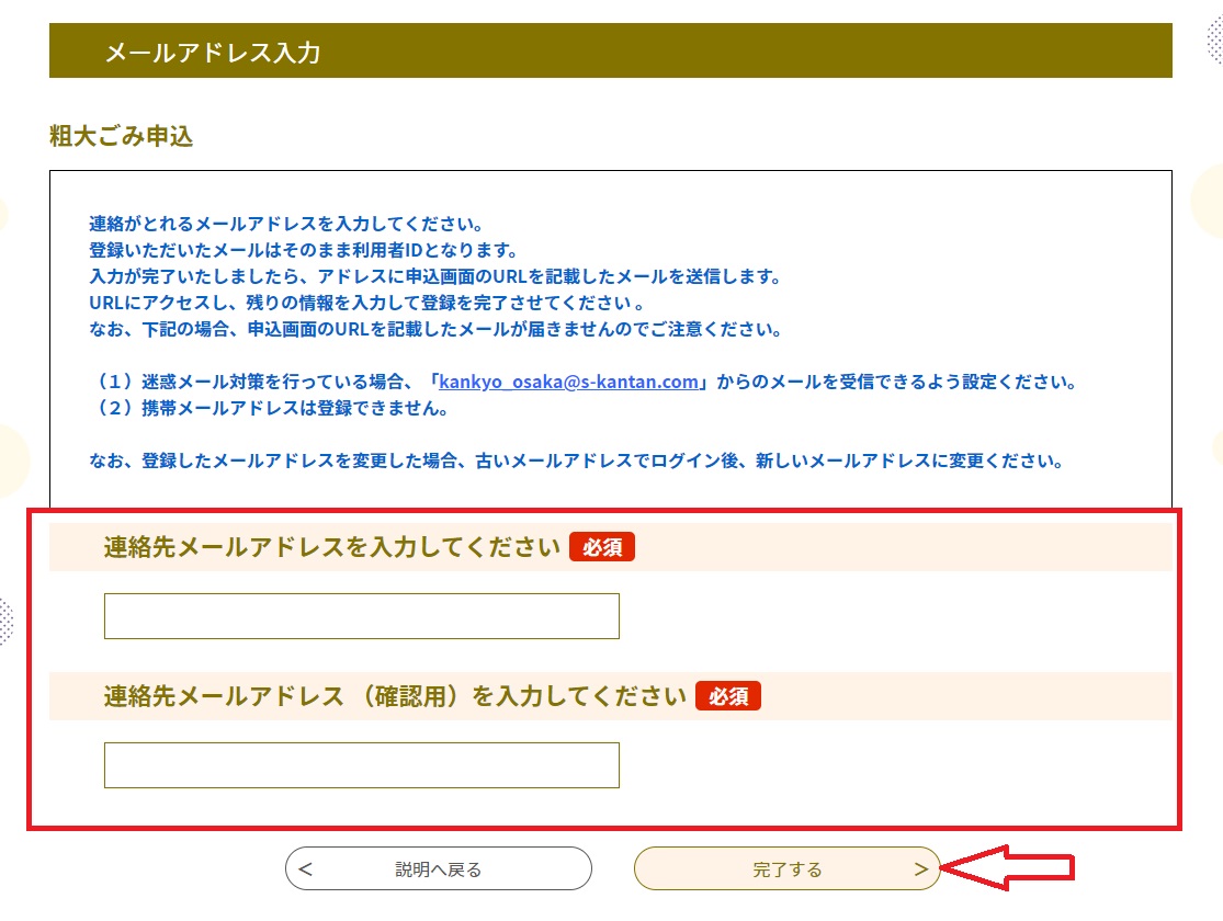 메일 주소를 확인한 후에 드디어 버리는 쓰레기에 대한 정보를 입력할 수 있습니다.