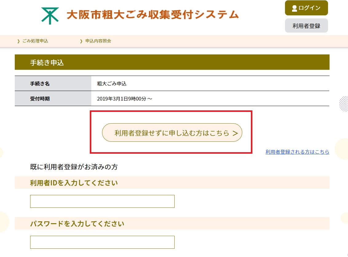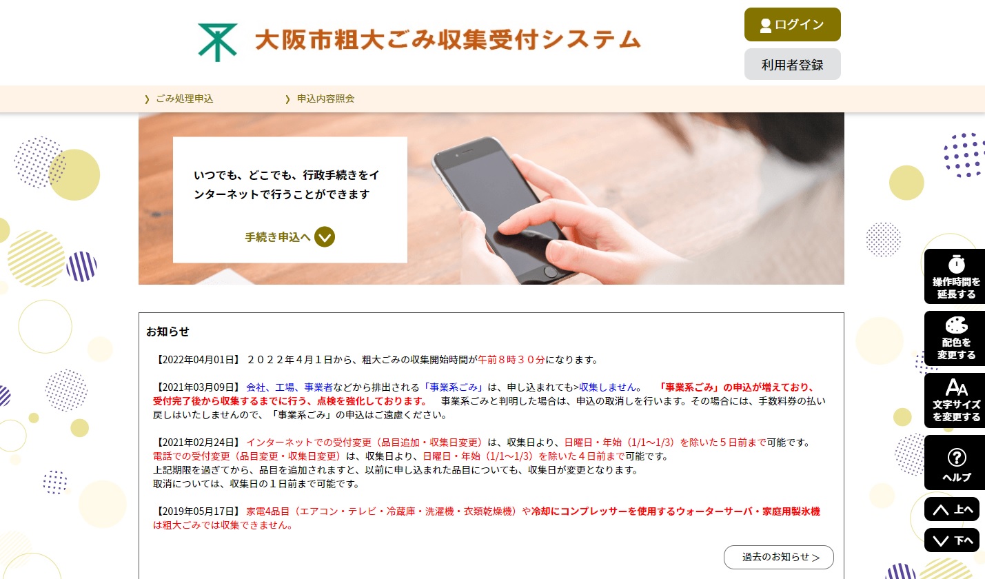 오사카시 소다이고미 온라인 신청