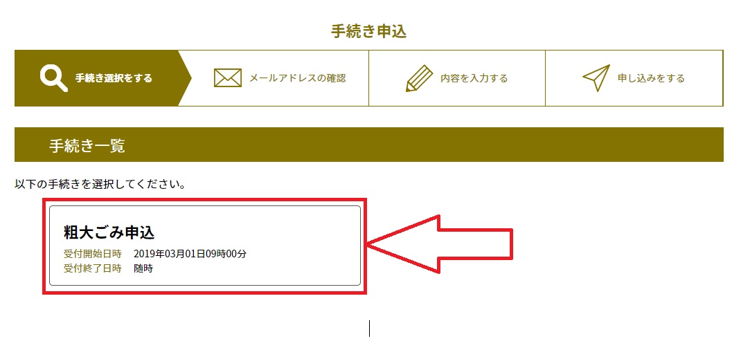 페이지를 쭉 내리다보면 '대형쓰레기 신청(粗大ごみ申込)' 이라는 버튼이 하나 보일거에요.