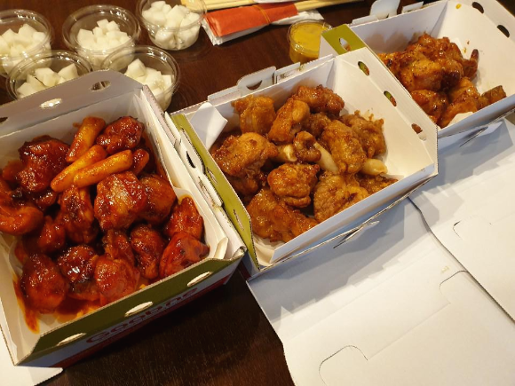 저희는 굽네 볼케이노(グッネボルケーノチキン), 후르츠소이갈릭(グッネフルーツソイガーリック), 허니멜로(グッネハニーメロー) !!!!