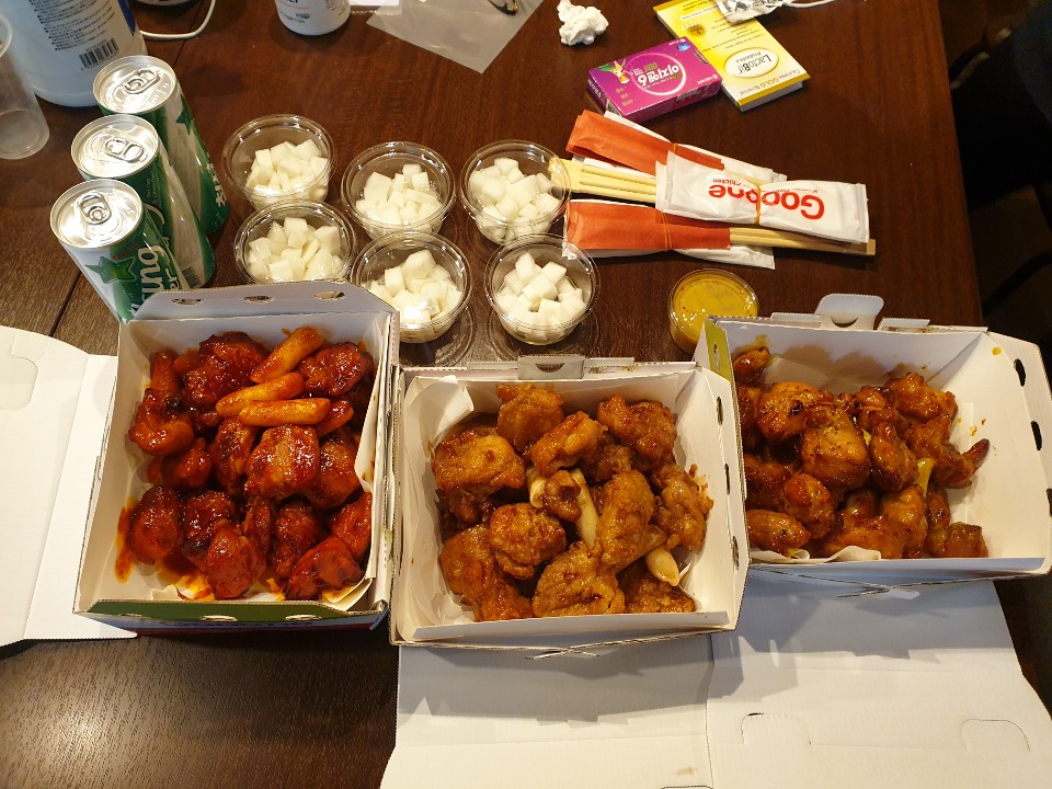 저희는 굽네 볼케이노(グッネボルケーノチキン), 후르츠소이갈릭(グッネフルーツソイガーリック), 허니멜로(グッネハニーメロー) !!!!