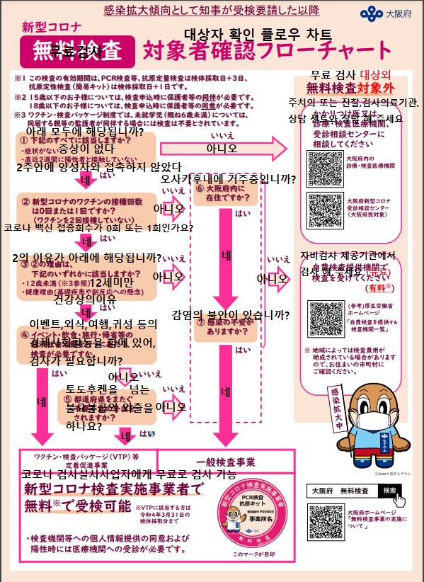 오사카후는 정말 빠르게 12월 23일, 특별조치법 제 24조 제 9항에 기초하여 무료 검사에 관한 안내를 홈페이지에 기재했습니다.
